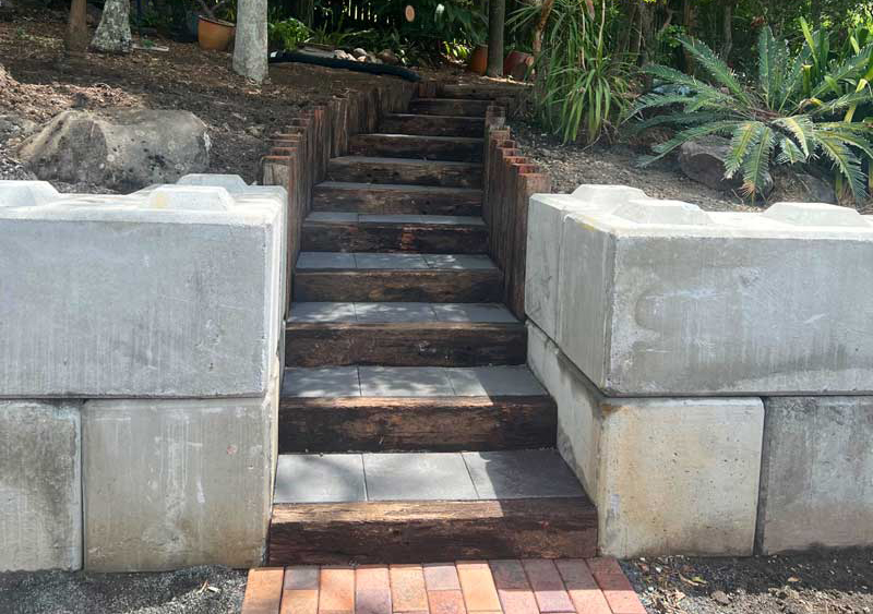 Retaining walls – concrete Lego blocks, sleepers, masonry blocks.